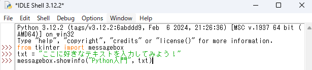 ※どうしてもできない場合は最初から入力しなおしたり、「IDLE」を再起動してやり直しましょう。