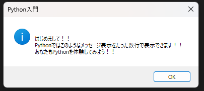 Pythonを使うと簡単に下の画像のようなメッセージを表示させる事ができます!!