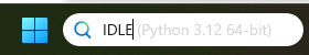次に「IDLE」というPythonの開発環境を起動します。Windowsであれば下記の図のようにタスクバーの検索窓に「IDLE」と入力してください。※画像はWindows11です。