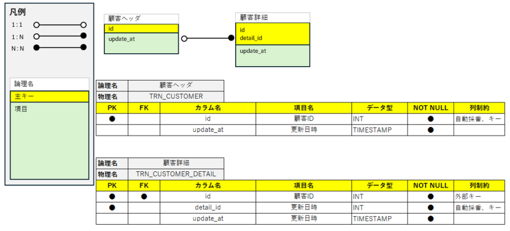 下記画像のようなER図とテーブル定義をmodels.pyで表現する
