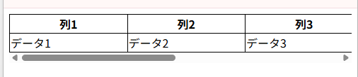 <td>データ1</td><td>データ2</td><td>データ3</td>
