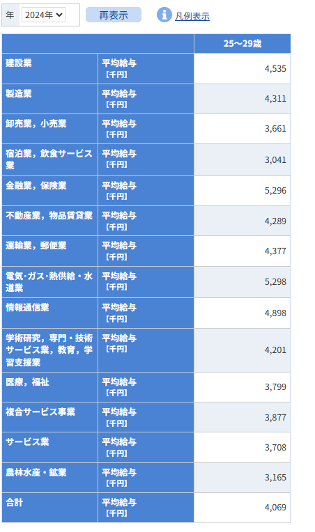 ChatGPT君やGemini君が言うには東京勤務の25~30歳は300~420万程度が一般的らしい。